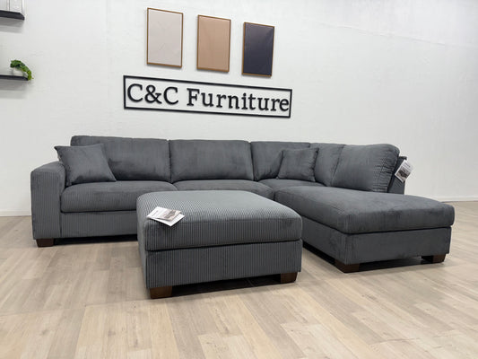 Thomasville Artesia Corduroy Fabric Sectional with Ottoman
