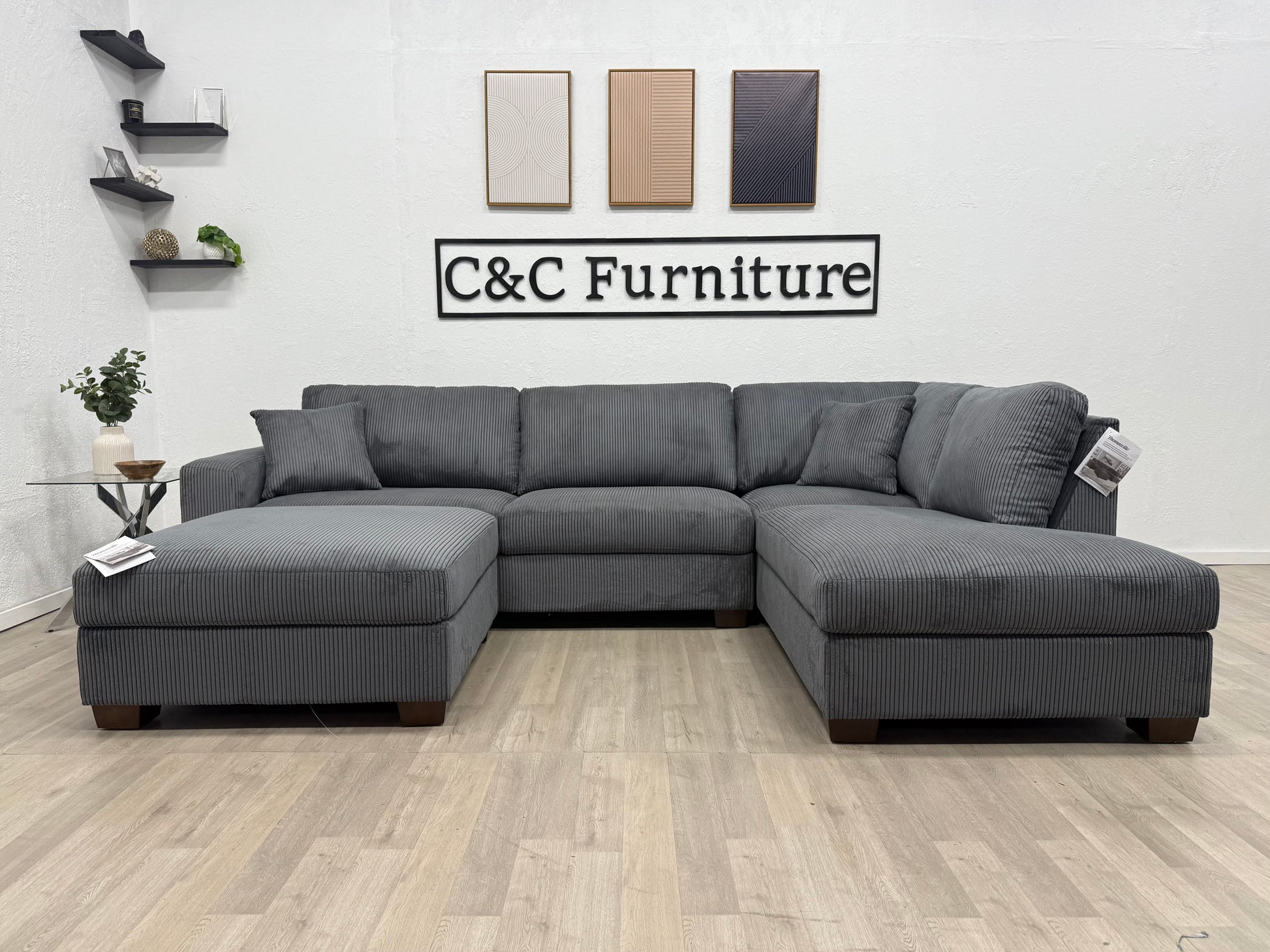 Thomasville Artesia Corduroy Fabric Sectional with Ottoman